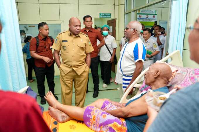 JAYAPURA – Gubernur Provinsi Papua, Matius Fakhiri mendadak datangi Rumah Sakit Umum Daerah (RSUD) Jayapura, Selasa (4/11). Inspeksi dadakan (sidak) ini merupakan langkah nyata dari Gubernur Fakhiri, untuk segera membenahi dan menata kembali pelayanan kesehatan di RSUD milik pemerintah tersebut. Ia juga banyak menerima laporan terkait kondisi rumah sakit yang ‘masih sakit’ ini.