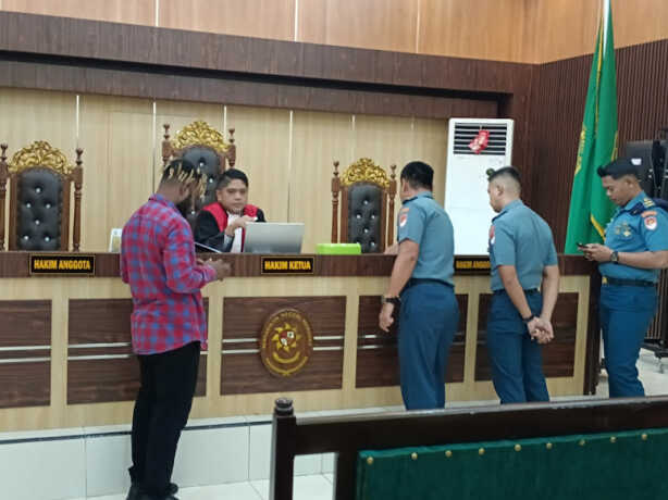 MERAUKE– Komando Daerah Angkatan Laut (Kodaeral) XI Merauke dipraperadilankan oleh Robert Gebze, warga negara PNG di Pengadilan Negeri Merauke, Senin (6/10). Praperadilan tersebut terkait dengan penetapan Robert Gebze sebagai tersangka oleh Kodaeral XI.