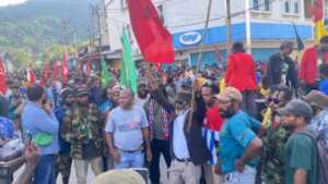 Di lapangan juga terlihat Menase Tabuni (Presiden Eksekutif ULMWP) dan beberapa anggota lainnya seperti Warpo Wetipo, Orgam Wanimbo, Hakim Pahabol dan Dano Tabuni