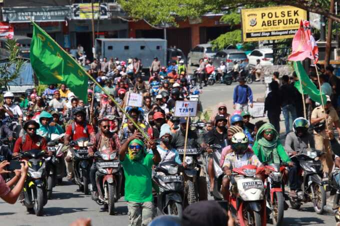 Ada yang di Lingkaran Abepura dan ada juga di Perumnas III Waena. Ini dilakukan pagi hari. Siang harinya pendemo di Perumnas III memilih bergabung ke Lingkaran Abepura. Demo berlangsung tertib hingga pukul 15.00 WIT. Baik aparat maupun pendemo sama berpanas-panasan. Yang hadir sebagian besar pemuda dan ada juga perempuan termasuk anak di bawah umur.