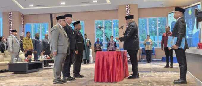 JAYAPURA – Gubernur Papua, Matius D. Fakhiri, resmi melantik Penjabat Sekretaris Daerah (Pj. Sekda) dan dua Pejabat Pimpinan Tinggi Pratama di lingkungan Pemerintah Provinsi Papua. Pelantikan yang berlangsung di Aula Lukmen lantai 9 kantor gubernur pada Kamis (20/11), menandai pelantikan perdana yang dilakukan oleh Gubernur Fakhiri sejak dilantik oleh Presiden Prabowo untuk periode 2025–2030.