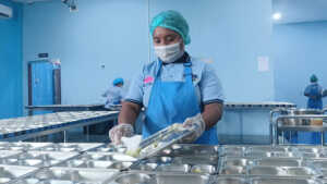 Petugas SPPG menyiapkan dan mengisi menu MBG untuk didistribusikan kepada anak-anak sekolah, belum lama ini. (foto:Yohana/Cepos)