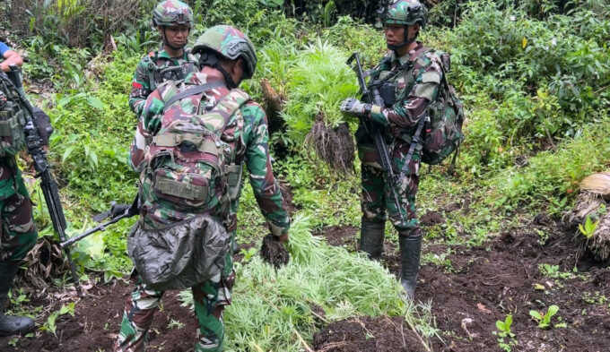 JAYAPURA-Satuan Tugas Pengamanan Perbatasan (Satgas Pamtas) RI–PNG Yonif 751/Vira Jaya Sakti (VJS) bersama Satgas Prayudha dan Satgas Ketapang berhasil mengungkap keberadaan empat kebun ganja tersembunyi di wilayah perbatasan, tepatnya di Kampung Aldom, Distrik Oksibil, Kabupaten Pegunungan Bintang, Selasa (23/9).