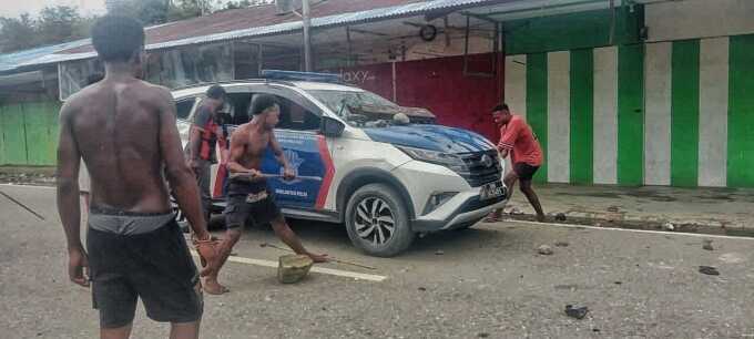 Menurut Cahyo, massa yang diduga berasal dari masyarakat Burmeso itu bahkan melakukan perusakan terhadap fasilitas kepolisian, termasuk kendaraan dinas.