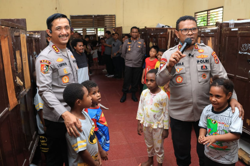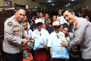 Kapolda Papua Irjen Pol Patrige Renwarin bersama jajarannya saat memberikan bantuan kepada anak anak Panti, di SPN Polda Papua, Rabu (1/10) (FOTO:Karel/Cepos