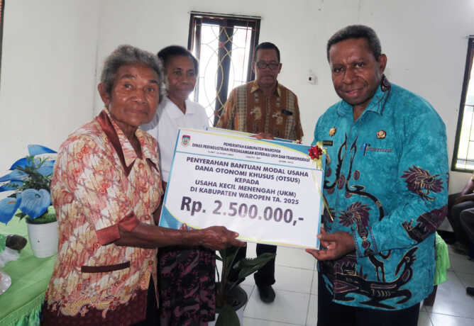 Dalam kesempatan itu, Bupati Mote menjelaskan bahwa bantuan modal usaha dari dana Otsus merupakan langkah nyata untuk menumbuhkembangkan potensi ekonomi masyarakat Waropen, khususnya pelaku usaha kecil dan koperasi di berbagai distrik.