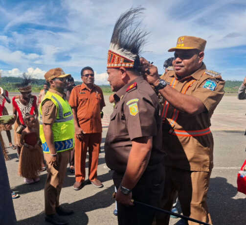 Kajari yang baru dilantik tanggal 30 Oktober lalu juga disambut dengan prosesi adat mansorandak dan pemasangan mahkota diatas kepala setelah turun dari pesawat. Pemasangan mahkota di kepala dilakukan oleh Bupati Supiori Heronimus Mansoben, S.IP., M.Si dan Wakil Bupati Biak Numfor Jimmy C.R Kapissa.