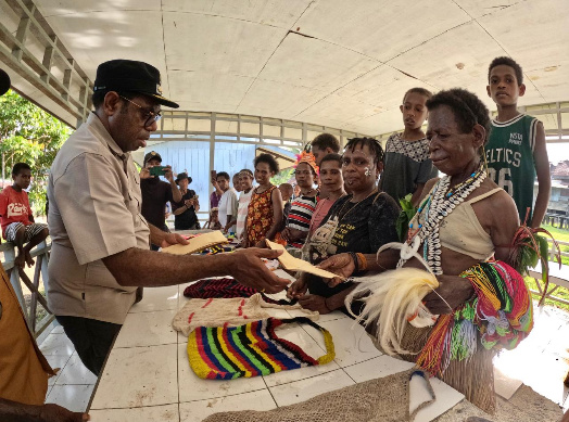 KEEROM – Bupati Keerom, Piter Gusbager kembali menyalurkan bantuan modal UMKM bagi mama-mama Papua di Kampung Bias, Distrik Towe, Rabu (17/9).