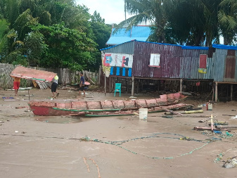 MERAUKE– Air pasang disertai dengan ombak yang tinggi menyebabkan sejumlah bangunan di sepanjang Pantai Lampu Satu, Kelurahan Samkai Merauke rusak. Warga yang tinggal di bibir pantai Lampu Satu Merauke tersebut juga diliputi rasa kewaspadaan yang tinggi. Apalagi, jika air pasang itu disertai dengan kecepatan angin yang tinggi.