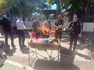 Pemusnahan dilakukan di halaman Kantor Kejaksaan Negeri Merauke dipimpin langsung Kajari Merauke Dr. Paris Manalu, SH, MH, dihadiri Hakim Pengadilan Negeri Merauke, Kasat Narkoba Polres Merauke dan Kasat Narkoba Polres Mappi.