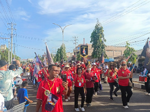 MERAUKE – Ribuan umat Katolik dari Komunitas Kerasulan Kerahiman Ilahi (KKKI) mengikuti longmarch penutupan Kongres Nasional V KKKI yang berlangsung di Merauke, Sabtu (20/9).