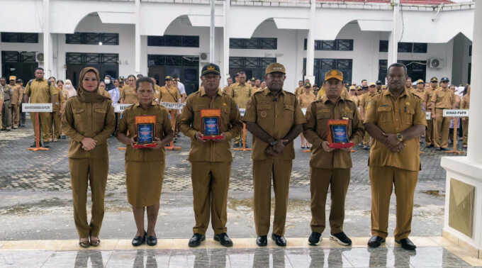 SARMI-Pemerintah Daerah Kabupaten Sarmi melaksanakan apel pagi bersama Aparatur Sipil Negara (ASN), Pegawai Pemerintah dengan Perjanjian Kerja (PPPK), serta tenaga honorer di halaman Kantor Bupati Sarmi.