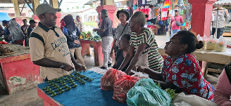 SARMI-Pemerintah Kabupaten Sarmi menggelar inspeksi mendadak (sidak) harga bahan pokok di Pasar Inpres Mararena, Jumat, 12 September 2025. Sidak dipimpin Bupati Sarmi Dominggus Catue bersama jajaran organisasi perangkat daerah dan kapolres Sarmi.