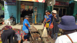 Area Pasar Lama Sentani tengah dibersihkan oleh aparat Distrik Sentani Kamis (8/1). Pembersihan ini dilakukan sebagai upaya menggeser para pedagang yang selama ini berjualan di bahu jalan dan trotoar. (foto:Kepala Distrik for Cepos)