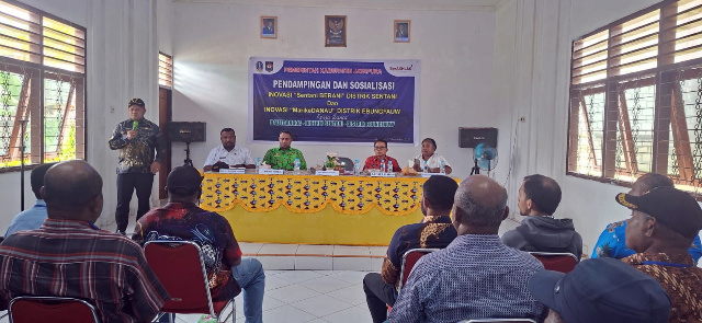SENTANI – Pemerintah Distrik Sentani dan Distrik Ebungfauw berkolaborasi dengan Balitbangda Kabupaten Jayapura menggelar kegiatan Pendampingan dan Sosialisasi Inovasi Distrik Sentani Berani dan Inovasi Distrik Ebungfauw Mari ke Danau.