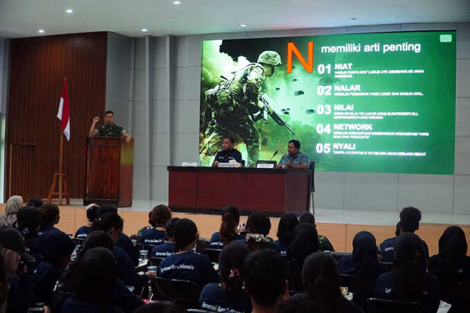 Materi pertama disampaikan oleh PT Bursa Efek Indonesia Wilayah Papua dengan tema edukasi investasi. Kemudian, Jeni Karay, public speaker sekaligus influencer generasi muda Papua, membawakan materi bertajuk “Bagaimana Memandang, Mencintai, dan Membangun Papua”. Materi kepemimpinan juga diberikan oleh Danbelneg Rindam XVII/Cenderawasih.