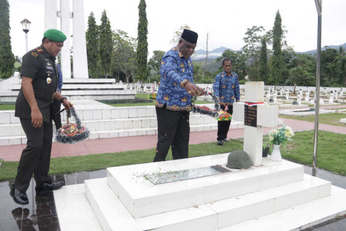 JAYAPURA – Dalam rangka memperingati Hari Ulang Tahun (HUT) Korps Pegawai Republik Indonesia (Korpri) ke-54 tingkat Kota Jayapura, Wali Kota Jayapura, Abisai Rollo memimpin langsung ziarah ke Taman Makam Pahlawan (TMP) Kusuma Trikora Waena, Sabtu (29/11).