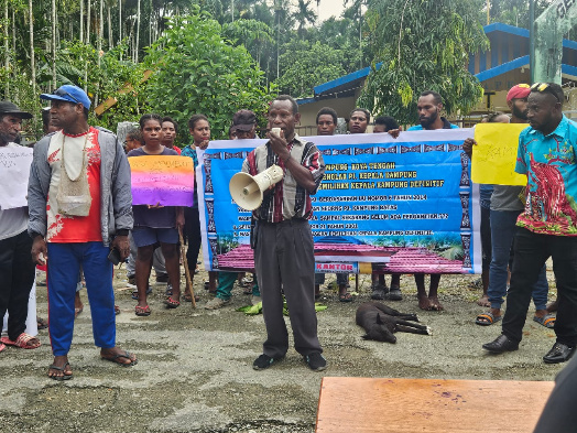 Masyarakat kampung Koya Tengah saat menggelar aksi demonstrasi di kantor kepala kampung, tanpak puluhan masa hadir dalam aksi tersebut, Jumat (12/9). (Foto/Istimewa)