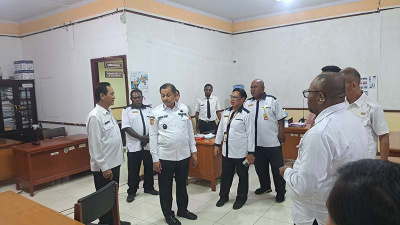 JAYAPURA – Wakil Wali Kota Jayapura, Rustan Saru kembali melanjutkan inspeksi mendadak (sidak) ke sejumlah organisasi perangkat daerah (OPD) di lingkungan Pemerintah Kota Jayapura. Kali ini, sidak dilakukan di Dinas Sosial (Dinsos) dan Dinas Pariwisata (Dispar), Rabu (14/1).