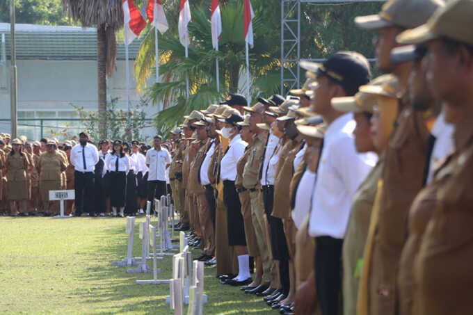 “Saya mengharapkan kehadiran ASN dalam apel pagi, pelaksanaan tugas sehari-hari, dan berbagai kegiatan pemerintahan,” ujar Evert usai upacara.