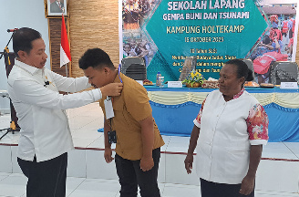 JAYAPURA-Dalam upaya meningkatkan kesiapsiagaan masyarakat terhadap potensi bencana gempabumi dan tsunami di Papua, khususnya di wilayah pesisir Kota Jayapura, Stasiun Geofisika Kelas I Jayapura menggelar kegiatan Sekolah Lapang Gempabumi (SLG) di Kampung Holtekamp, Rabu (15/10).