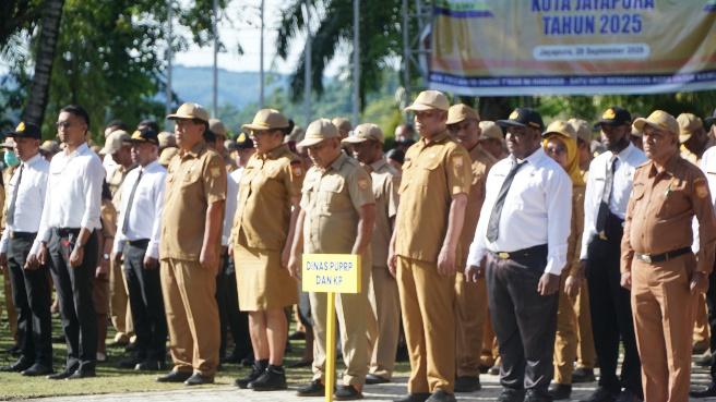 JAYAPURA-Wali Kota Jayapura, Abisai Rollo menegaskan pentingnya kedisiplinan dan tanggung jawab bagi seluruh Aparatur Sipil Negara (ASN) di lingkungan Pemerintah Kota Jayapura. Hal tersebut disampaikan dalam arahannya saat apel gabungan bersama seluruh Organisasi Perangkat Daerah (OPD) di halaman Kantor Wali Kota Jayapura, Senin (20/10).