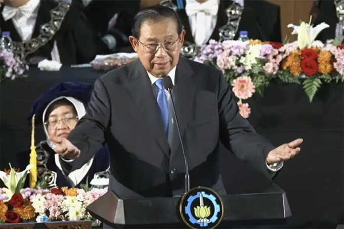 JAKARTA – Presiden ke-6 RI Susilo Bambang Yudhoyono (SBY) menyampaikan orasi ilmiah usai menerima penghargaan 10 Nopember dari Institut Teknologi Sepuluh Nopember (ITS) Surabaya, Selasa (11/11). Dalam orasi ilmiahnya, SBY mengaku telah meninggalkan dunia politik dan kini menjalani hidup sebagai seniman.