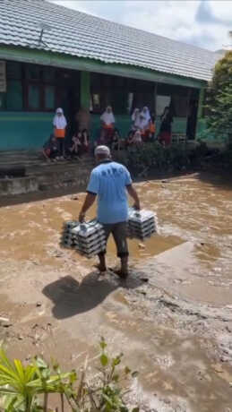 “Rata-rata sekolahnya berada di pinggir air, sekitar 30 meter dari dermaga. Anak-anak biasanya ikut membantu. Mereka antusias sekali,” tambahnya.