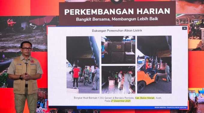 “Menteri ESDM mengirimkan 1.000 genset yang akan dibagi di 3 provinsi. Ini sudah diterima di posko kita di Bener Meriah sebanyak 125 genset,” kata Kepala Pusat Data, Informasi, dan Komunikasi Kebencanaan (Kapusdatin) BNPB Abdul Muhari dalam konferensi pers, Minggu (28/12).