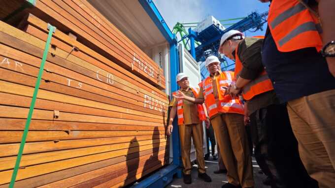 JAYAPURA – Pemerintah Provinsi Papua melalui Dinas Kehutanan dan Lingkungan Hidup (DKLH) Papua dan Dinas Perdagangan dan Perindustrin Papua, resmi melepas ekspor 10 kontainer kayu olahan dari Pelabuhan Jayapura menuju Pelabuhan Shanghai, China, Selasa (25/11).