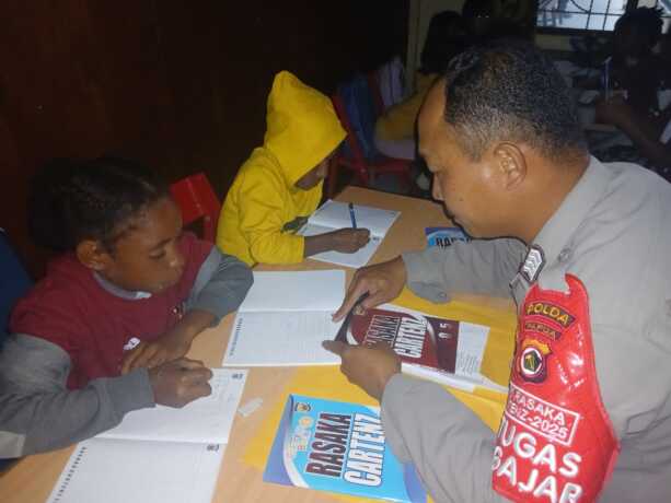 Kegiatan yang dipimpin langsung oleh Kasubsatgas Si-Ipar, Ipda Maikel Matius Imburi, diikuti dengan antusias oleh anak-anak setempat. Mereka membaca, menulis, berhitung, serta mewarnai gambar, yang dikemas dengan suasana penuh keakraban. Sesi belajar kemudian ditutup dengan kegiatan makan bersama anggota kepolisian.